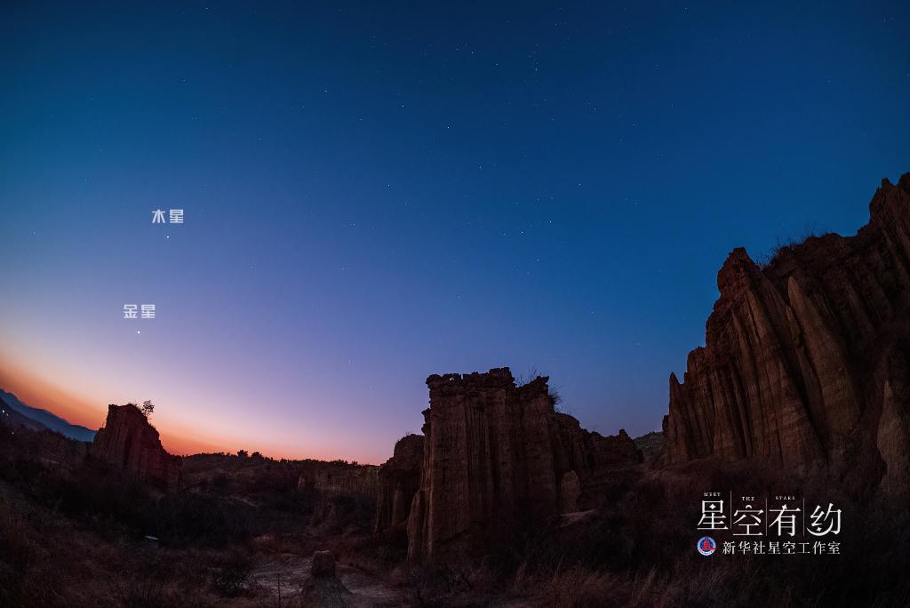 重慶市天文愛好者戴建峰2023年2月17日傍晚在云南元謀土林拍攝的金木相伴。(本人供圖)