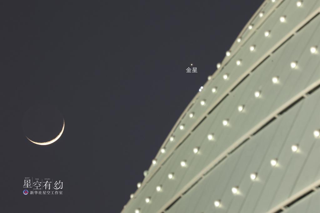 這是北京市天文攝影愛好者王俊峰2023年2月22日在北京市西城區(qū)拍攝的金星伴月牙。(本人供圖)