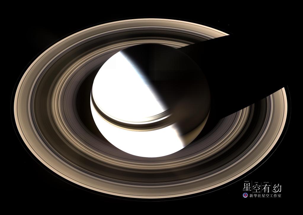 “卡西尼”號探測器拍攝的展示整個土星及土星環全貌的圖片。(新華社/法新)