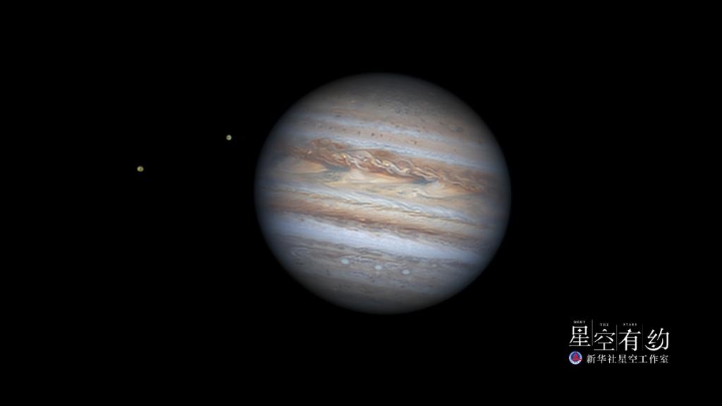 廣東省天文攝影愛好者周志偉2020年7月20日在珠海市拍攝的木星及其兩顆衛(wèi)星。(本人供圖)