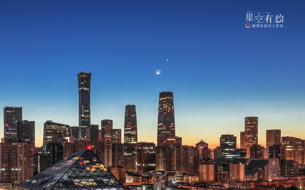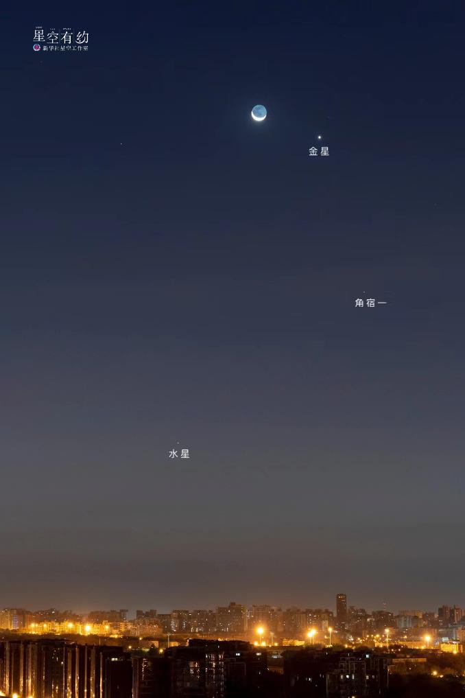 北京市天文攝影愛好者湯波2020年11月13日在北京拍攝的金星、角宿一、水星和彎月。(本人供圖)
