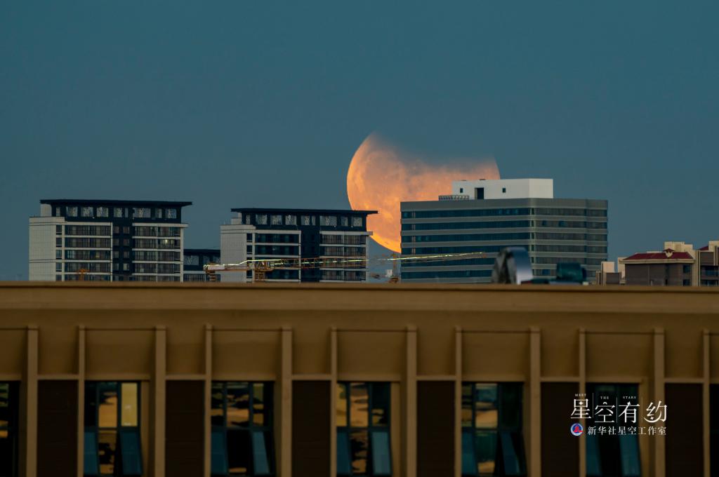這是2021年11月19日在昆明市拍攝的月偏食景象。新華社記者江文耀 攝