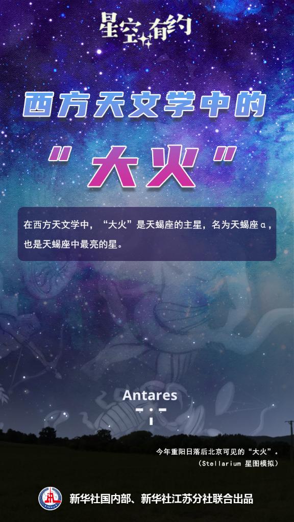 今年重陽節(jié)這天,我國絕大部分地區(qū)的人們在日落后短暫的一段時(shí)間內(nèi),還可在西南方向的天空看見“大火”,但地平高度已經(jīng)不足10度,可觀測時(shí)間不到一小時(shí)。而到11月初,很多地方已完全看不到“大火”。