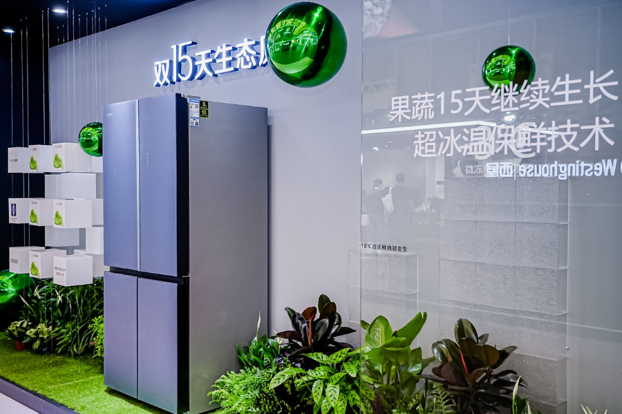 在冰箱方面,康佳极光系列·双15天生态原鲜冰箱搭载了温、湿高精度智能传感器,能够实时感知食材温、湿变化,一方面可通过冰点精准控制,程序性变温打断肉类冻结过程,实现15天微冻易切;另一方面可智能匹配最适宜的温度与湿度,抑制细胞新陈代谢,维持细胞活性,锁住VC和花青素,使细胞处于有序的静态运动,实现果蔬15天继续生长。