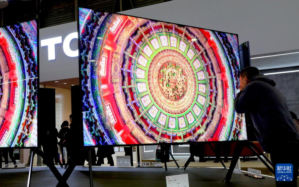 3月14日,一名参观者在TCL公司展台上近距离观察一款电视展品的屏幕。当日,以“智能科技,创享生活”为主题的2024年中国家电及消费电子博览会(AWE2024)在上海新国际博览中心开幕。新华社记者 方喆 摄