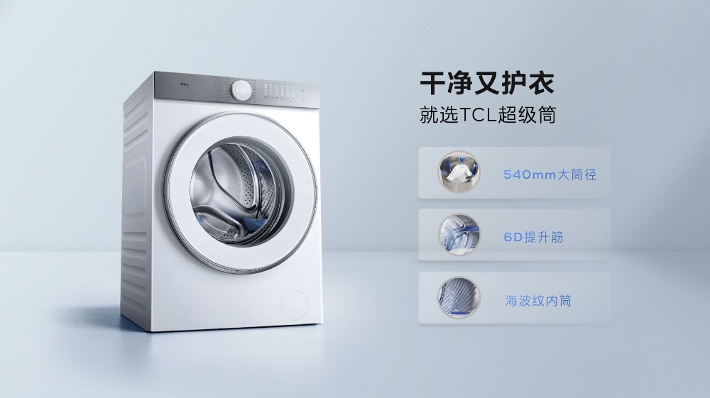 3月12日,TCL在主题为“万物至净”的2024年TCL洗衣机新品发布会上,推出洗净比突破1.2的超级筒洗衣机T7H。依托在白色家电领域二十多年的深耕和积累,TCL首创超级筒科技,实现行业最高的1.2洗净比,满足消费者“把衣服彻底洗干净”的需求。