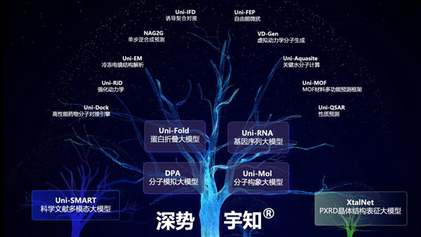 深势科技联合创始人、CEO孙伟杰介绍,近年来,深势科技与协作者们推出了DPA分子模拟大模型、Uni-Mol分子构象大模型、Uni-Fold蛋白折叠大模型、Uni-RNA基因序列大模型、Uni-Dock高性能分子对接引擎,以及Uni-SMART科学文献多模态大模型等一系列科学大模型及底层引擎。
