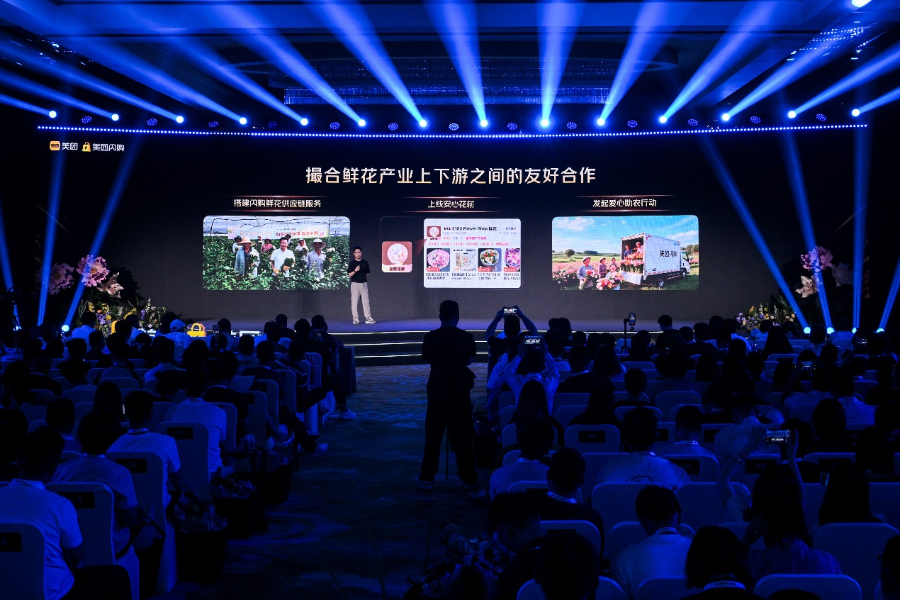在鲜花大会现场,美团闪购面向产业链发布了全流程优化升级方案,在提升商品丰富度、优化产业生态、扶持商家经营三方面推出多项新举措,助力行业熨平波动、有序经营,帮助“好花店”持续向上、消费者“安心买花”。