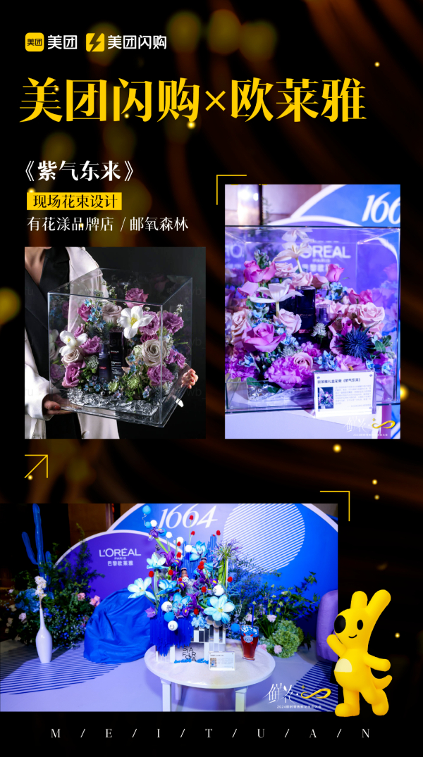 美妆个护,花样礼赠。2023年,美团闪购鲜花与欧莱雅共同打造欧莱雅礼品花盒。通过欧莱雅品牌直发供货形式,打造鲜花+美妆品质礼盒商品,在38、母亲节、520、父亲节等重要档期,成功推出多款高颜值、高性价比的礼赠花盒,受到用户一致好评。