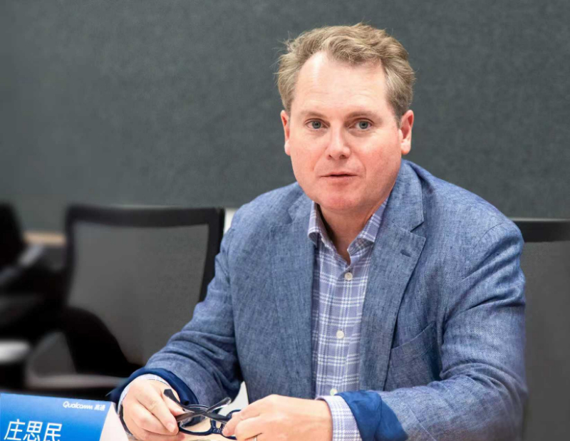 图为高通技术公司工程技术高级副总裁庄思民(John Smee)接受媒体采访