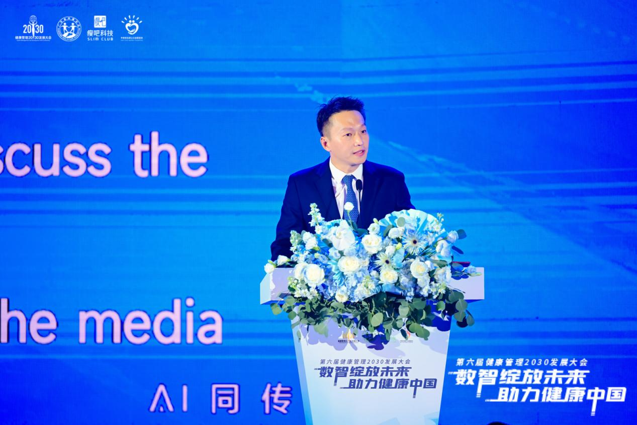 瘦吧科技创始人兼首席执行官黄祥泓先生作为大会主办方代表致开幕辞。他表示“国家在加快形成以人工智能为引擎的新质生产力,将基于大模型、大数据、大算力技术,实现人工智能在各行各业的落地应用,其中就包括健康管理”。他深感荣幸瘦吧科技已经参与到这一伟大的事业中来,通过数字化创新手段,致力于构建便捷高效的健康服务体系,为公众体重管理提供全方位支持。