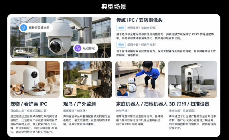 对于摄像头、扫地机器人、3D打印机、宠物喂食器等设备,用户的期待早已不是“能远程看一眼”这么简单。在海外也能秒速打开家里的监控;在弱网环境下扫地机依然听指挥;在宠物异常时第一时间收到提醒;在3D打印过程中实时掌控进度。这些期待的背后,是对实时交互能力与端云协同AI的双重考验。