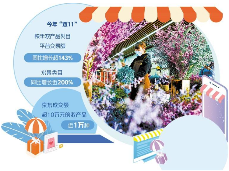 平台企业对农产品的重视,使得更多的农产品从后排走到前排。数据显示,作为快手一直以来的优势行业,农产品行业保持了强势增长。今年大促期间,农产品类目平台交易额同比增长超143%,水果类目增长瞩目,同比增长近200%。在京东,成交额超10万元的农产品近1万种。