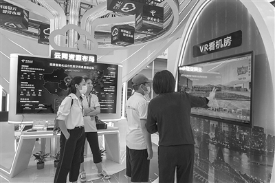 图为2022中国算力大会上,与会人员在参观成果展览。 新华社记者 朱峥 摄