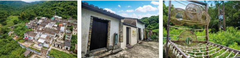 荔枝窝村(左),荔枝窝文化馆(中),客家传统民俗展品(右)(图片来源:香港旅游发展局)