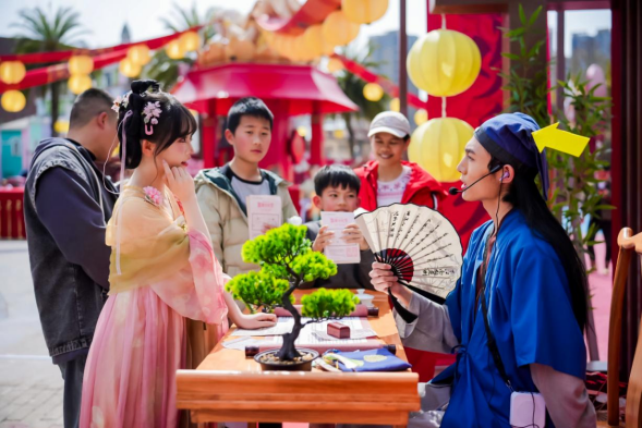 重庆欢乐谷举办国潮文化节期间,NPC与游客互动现场图