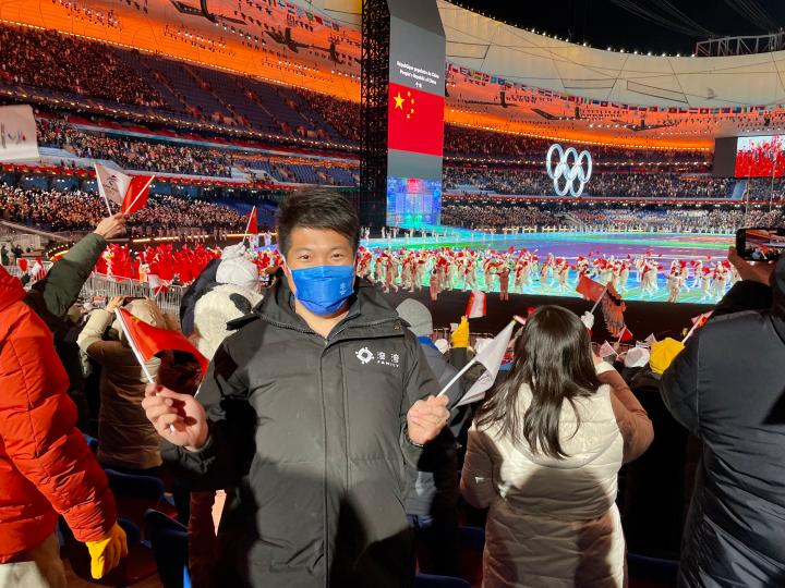 2月4日,臺(tái)灣教師陳文成在“鳥巢”觀看北京冬奧會(huì)開幕式。受訪者供圖