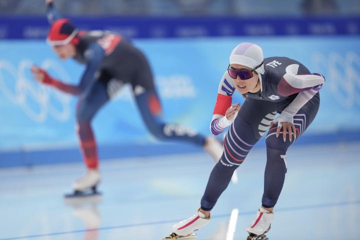 2月7日,北京冬奧會(huì)速度滑冰女子1500米決賽在國(guó)家速滑館“冰絲帶”打響。中國(guó)臺(tái)北選手黃郁婷出場(chǎng)時(shí),現(xiàn)場(chǎng)觀眾報(bào)以熱烈掌聲和助威聲。
