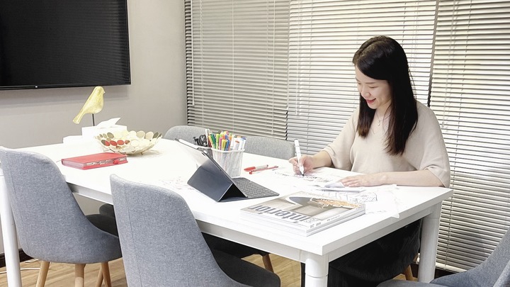 圖為臺灣建筑設計師黃潔如在工作(2021年8月30日攝)。新華社發(fā)(受訪者供圖)