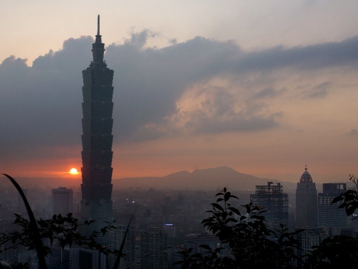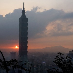 夕陽(yáng)映照下的臺(tái)北101大樓。新華社記者 陶明 攝