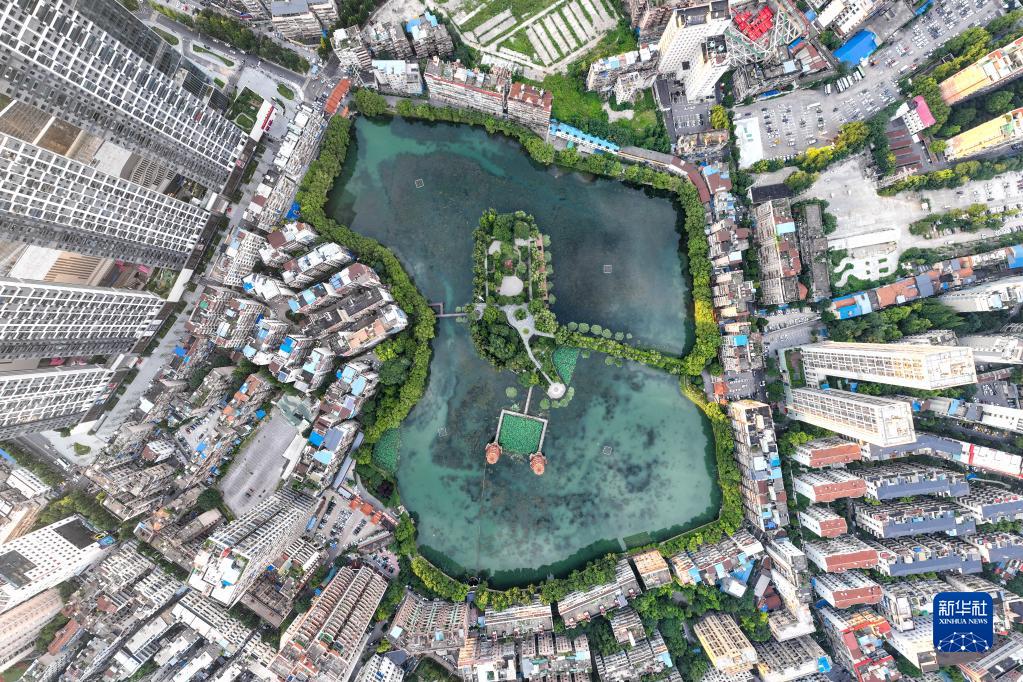 7月3日拍攝的武漢市寶島公園(無人機拼接照片)。新華社記者 伍志尊 攝