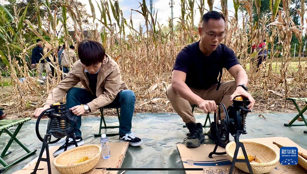 10月19日,臺(tái)灣記者體驗(yàn)剝玉米粒。新華社記者 王承昊 攝