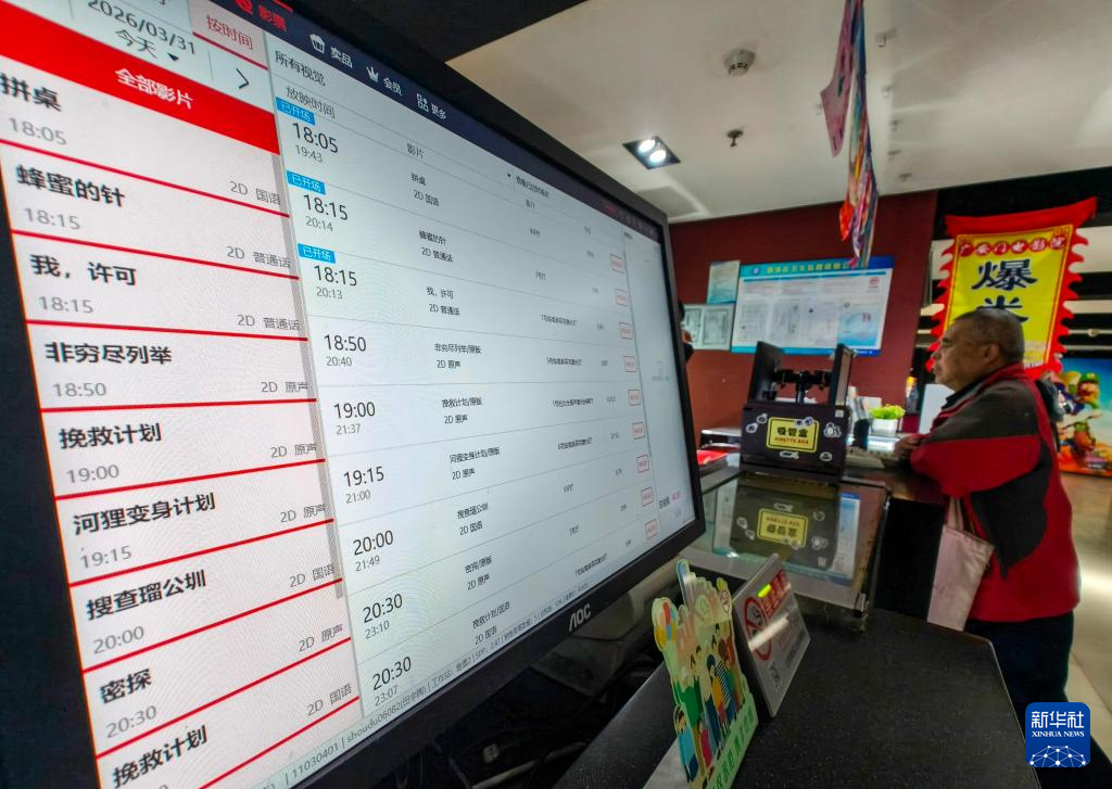 3月31日,在北京广安门电影院,电脑上的排片表显示有台湾电影《搜查瑠公圳》(手机照片)。新华社记者 陈晔华 摄