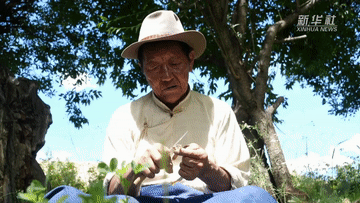 今天,和他一起,上山采挖制作藏紙的原材料。