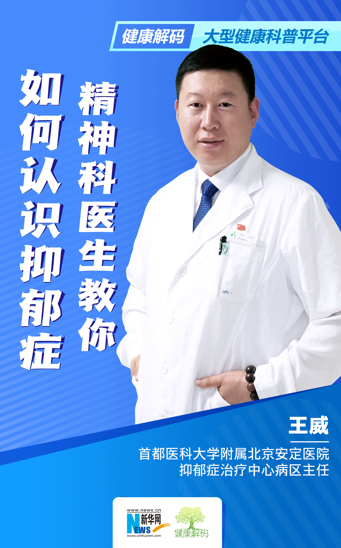 ????????王威,醫學碩士、副主任醫師,北京安定醫院抑郁癥治療中心病區主任,是知名抑郁癥專家王剛教授團隊成員。多年來一直在抑郁癥治療中心從事臨床、教學、科研工作,熟悉精神科常見疾病的診治,擅長情感障礙疾病的診斷和治療。