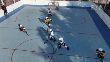 在山東省威海市大光華學校旱地冰球場,一直以來,冰雪運動都備受當?shù)貙W生青睞。