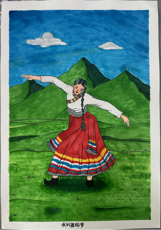 图为来自西藏的古如卓玛创作的绘画作品《我的舞蹈梦》。
