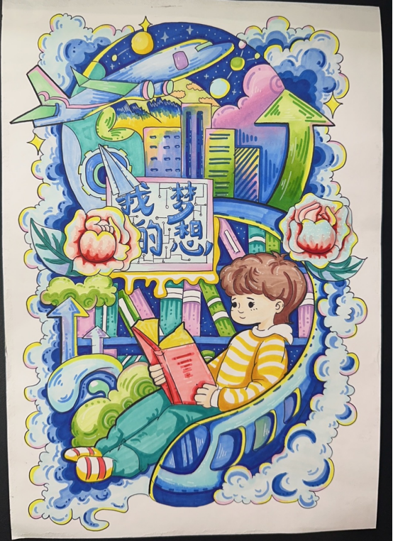 图为来自云南的夏梓轩创作的绘画作品《我的梦想》。