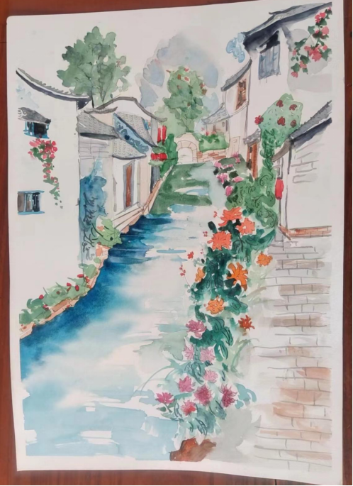 图为来自甘肃的杨馨创作的绘画作品《陇东小江南》。