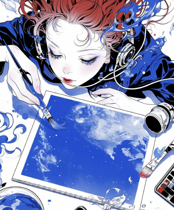图为来自甘肃的胡馨瑶创作的绘画作品《我的梦想--星辰大海》。