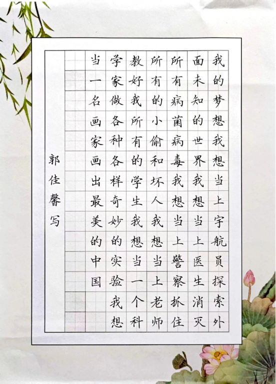 图为来自甘肃的郭佳馨创作的书法作品《我的梦想》。