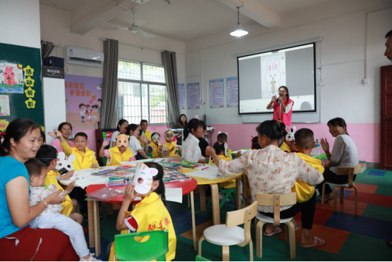 5月27日,江西省吉安市泰和县坎头村的阳光驿站内,专职志愿者在组织开展亲子活动。新华网李科燊 摄