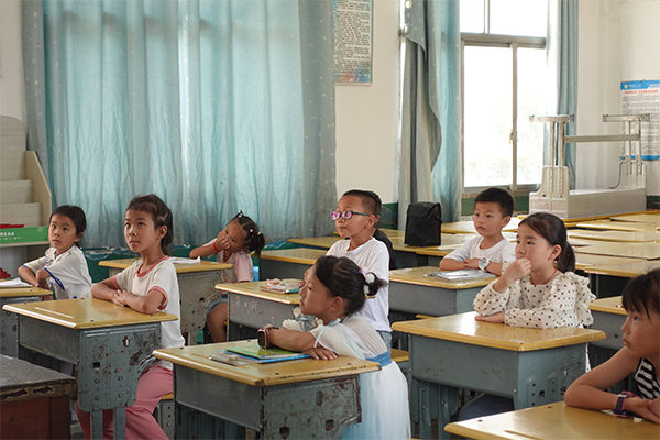 7月29日,贵州省纳雍县维新镇第二小学的孩子们在认真听课。新华网吴咏玲 摄