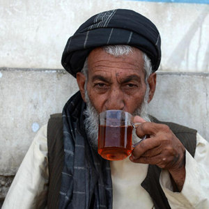 9月14日,一名商販在阿富汗坎大哈街頭等待顧客。