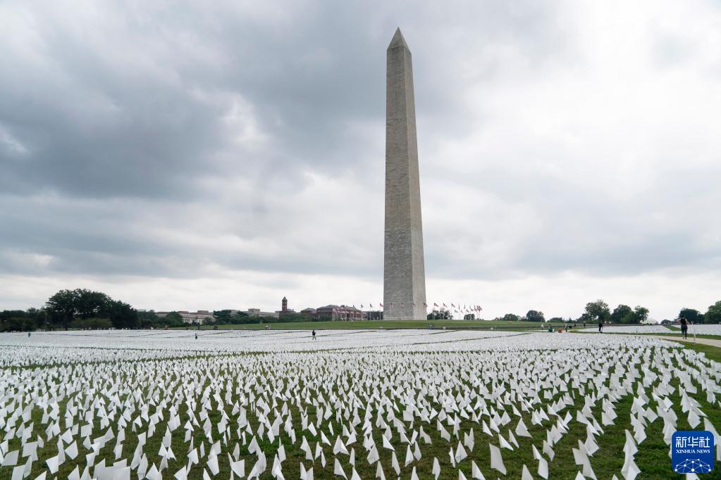 當(dāng)日起至10月初,超過66萬面白色旗幟擺放在華盛頓紀(jì)念碑附近悼念美國超過66萬名新冠逝者。