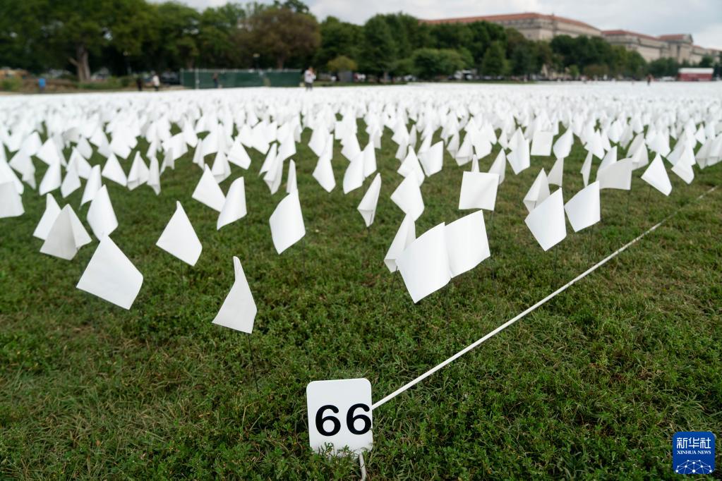 當日起至10月初,超過66萬面白色旗幟擺放在華盛頓紀念碑附近悼念美國超過66萬名新冠逝者。