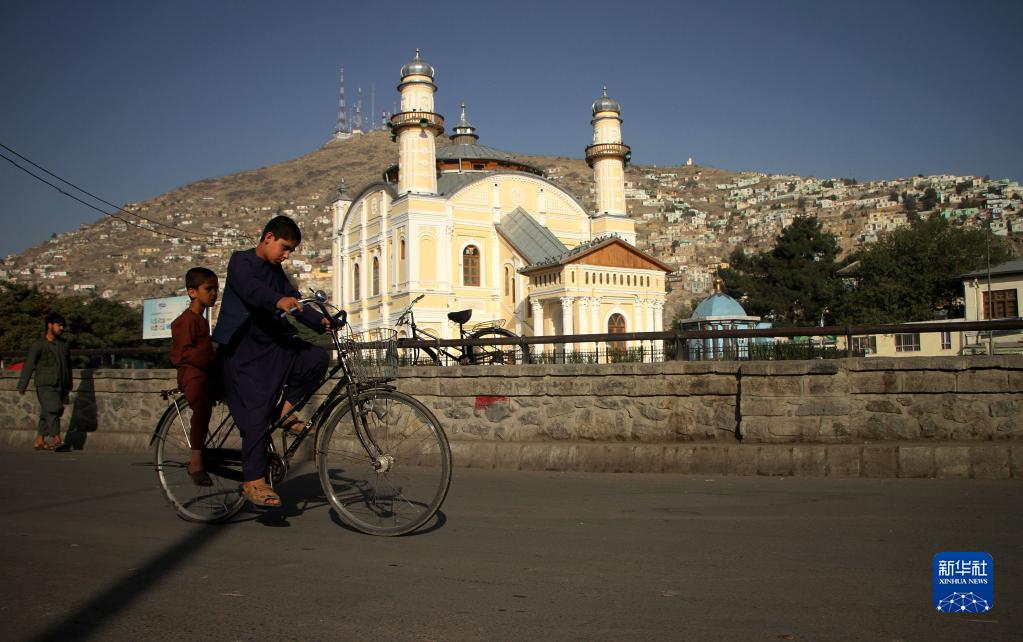 9月15日,一名阿富汗男孩在喀布爾街頭騎車。
