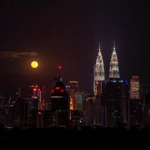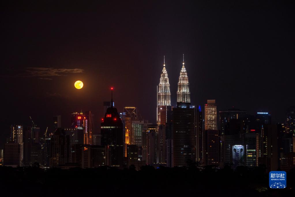 9月21日,中秋圓月映襯著馬來西亞吉隆坡城市夜景。新華社發(張紋綜攝)