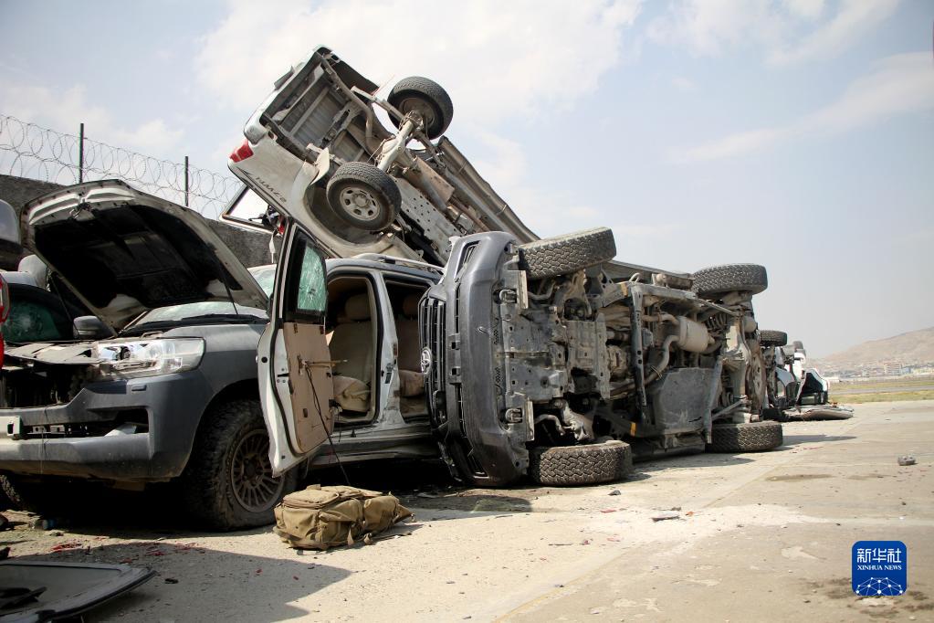 這是9月20日在阿富汗喀布爾機(jī)場拍攝的損毀的汽車。