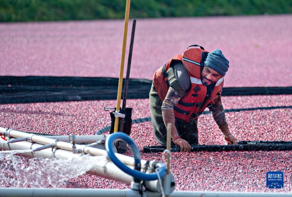 10月19日,農民在加拿大里士滿收獲蔓越莓。
