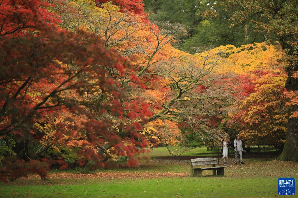 10月27日,游客在英國格洛斯特郡的韋斯頓伯特植物園欣賞秋景。