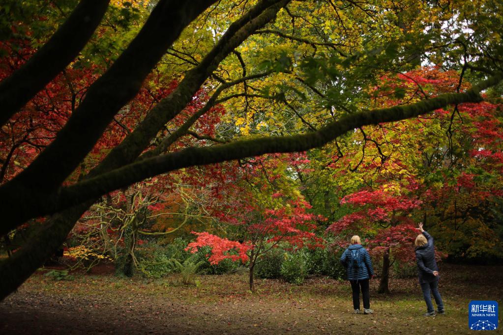 10月27日,游客在英國格洛斯特郡的韋斯頓伯特植物園欣賞秋景。
