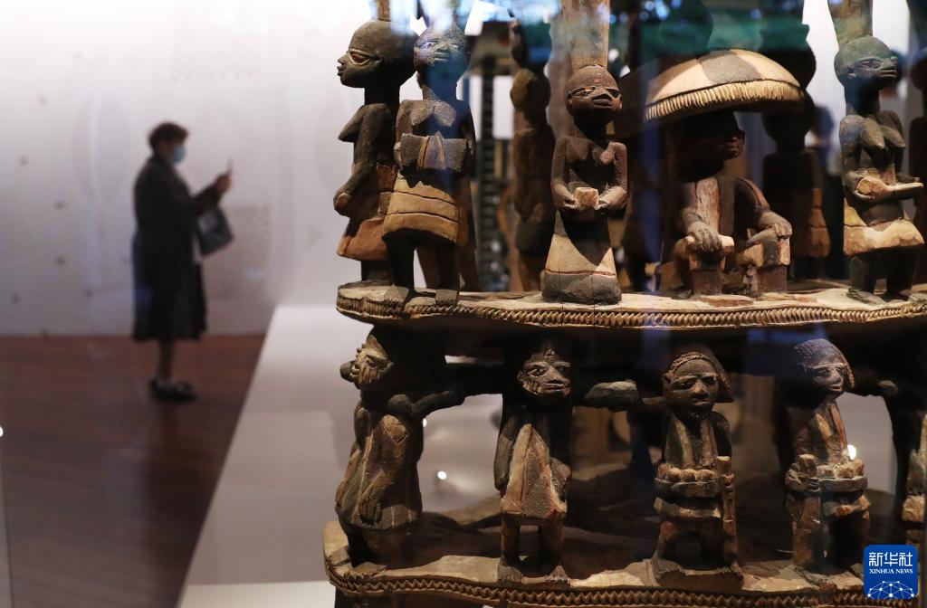 這是10月28日在法國(guó)巴黎凱布朗利博物館拍攝的即將歸還貝寧的文物。