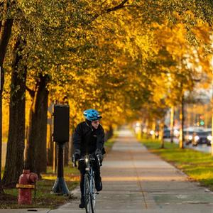 11月2日,一名攝影師在美國芝加哥拍攝秋景。