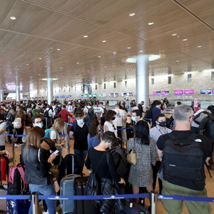 11月28日,人們在以色列本·古里安國際機場出發大廳等待。