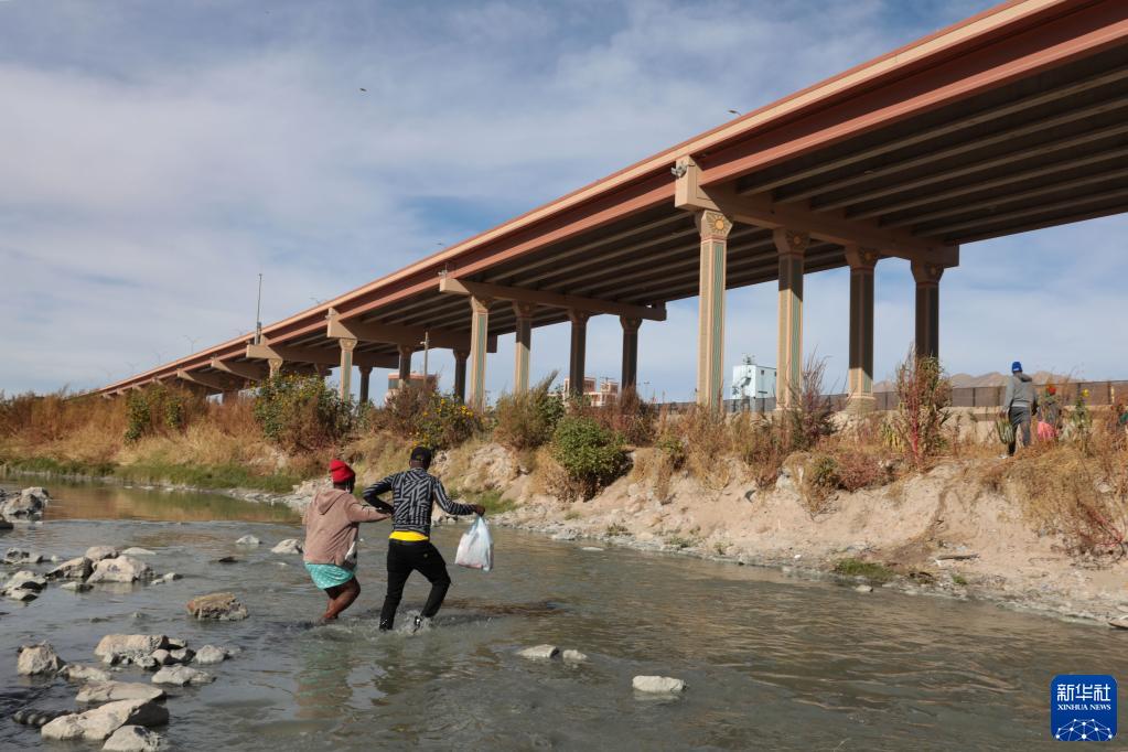 12月7日在墨西哥華雷斯城拍攝的照片顯示,移民試圖通過美墨邊境的布拉沃河進入美國。